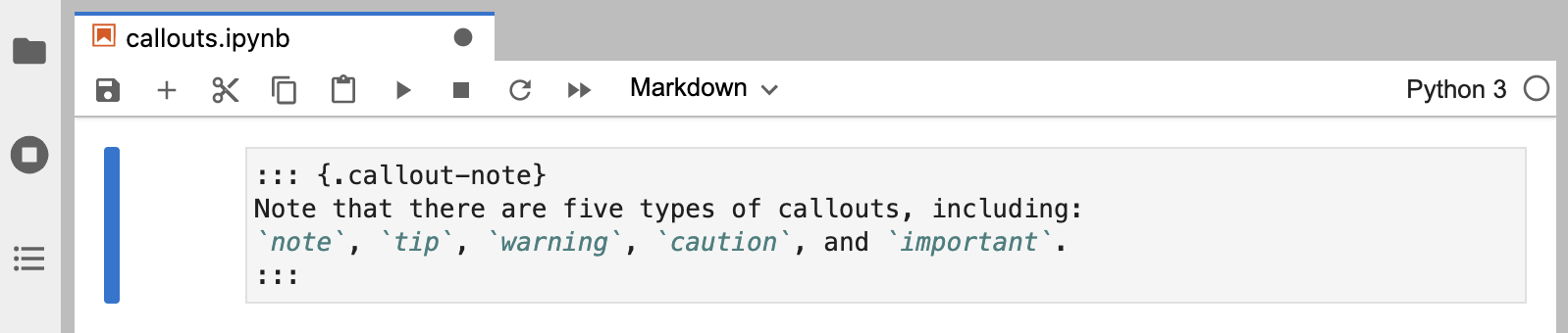 Callouts are markdown divs that have special callout attributes. Here’s an example of creating a callout within a markdown cell.